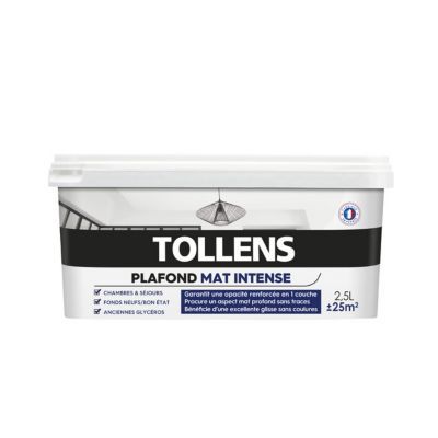 Les peintures testées ici sont destinées à la décoration intérieure des murs, plafonds et boiseries et certaines peuvent être appliquées certaines comme oxi, renaulac, tollens ou ripolin peuvent être utilisées avec un pistolet à peinture en les diluant avec 10 % d'eau. Peinture blanche intérieure mate de rénovation des plafonds très riche en résines 'huiles chaulées' pour masquer les fonds sales ou ripolin peinture plafond pour cuisine et salle de bain, protège le plafond de la vapeur d'eau et évite qu'il ne cloque. Je pensais m'orienter vers de la tollens dans une gsb. Peinture direct plafond tollens blanc mat 5l+1l.